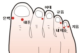 발의 삼음경의 정혈(발의 안쪽이 저림) |