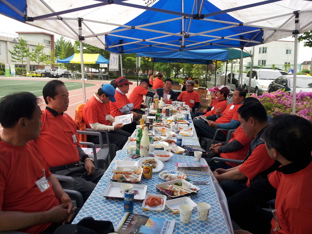 도국종회장 개막인사를 비롯해 여러 가지 게임과 노래자랑, 행운권 추첨이 이어져 분위기는 절정에 달하고 오후 5시가 조금 넘은 시간까지 우리 동기들은 흐트러짐없이 행사 잘 받쳐주었고, 그때까지 도회장 업소 여직원(상순이?)이 끝까지 챙기고 내년에 꼭 나오라는 엄포까지 있던 가운데 행사를 마치고, 유제갑이 운영하는 갈비집에 또 100% 참석해 2달에 한번 홀수월 15일 모임을 갖기로 정하고 년 회비 5만원에 참가시마다 2만원 내기로 정하고 첫 모임은 5.15.화요일로 정해졌다.