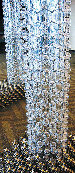- ▲ 2007년 미국 샌프란시스코에서 열린 미국 재료과학회 춘계학술대회에 전시된 탄소나노튜브 모형. 모형의 투명한 구슬은 탄소 원자를 상징한다. 탄소나노튜브는 탄소 원자가 만드는 빨대 모양의 긴 나노 물질이다./미국 재료과학회 제공