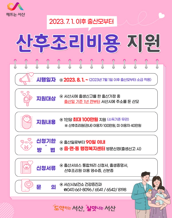 서산시가 출산가정에 산후조리비용을 지원한다.