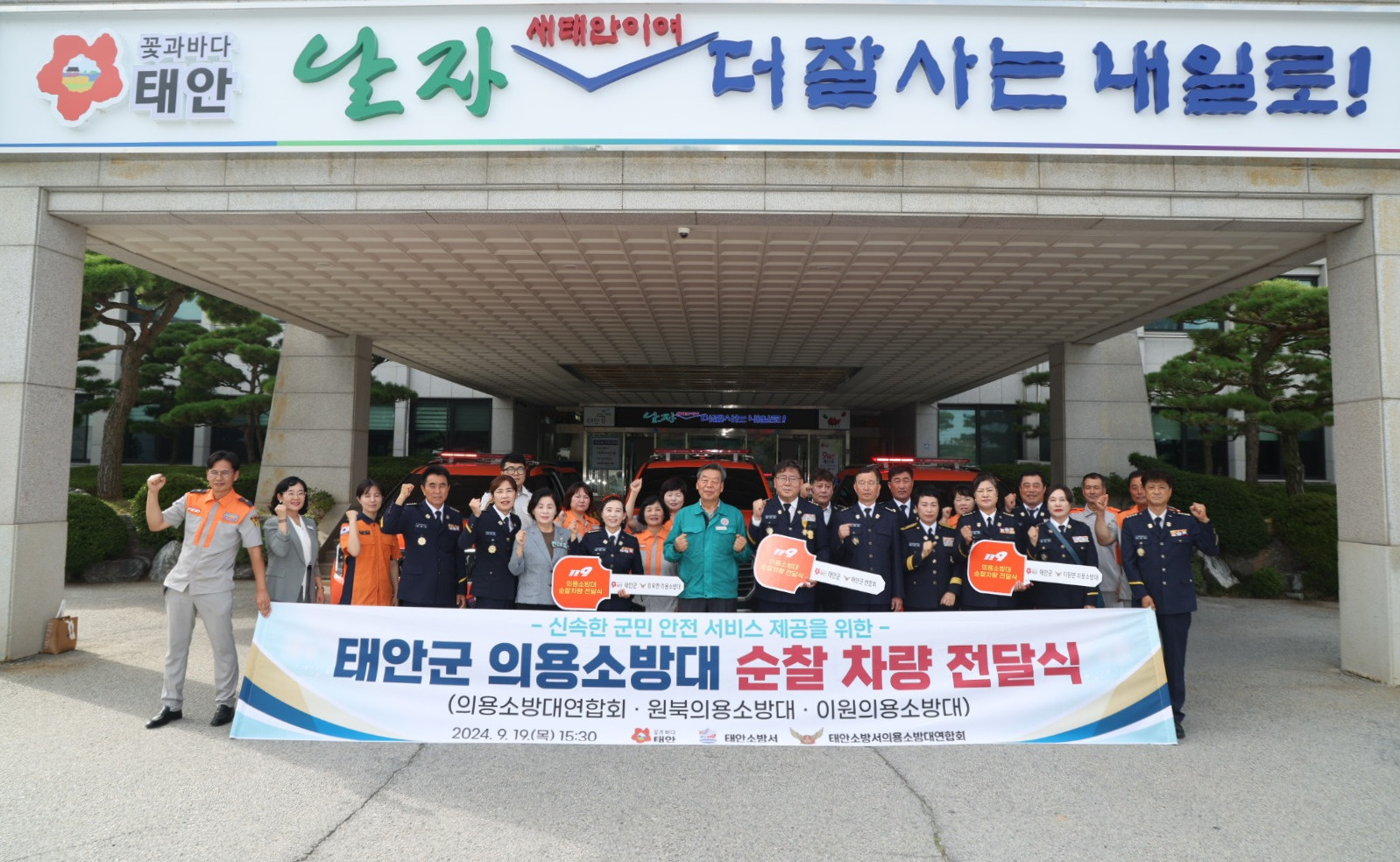 태안군이 군민 안전에 힘쓰는 의용소방대에 순찰차량 3대를 전달했다.