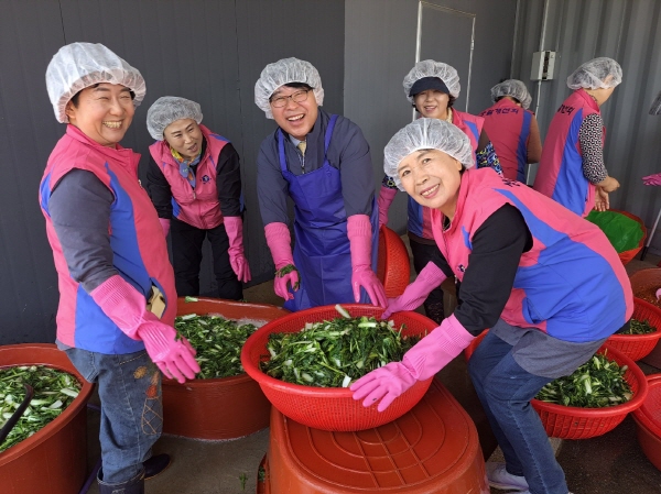 이날 연합회원들은 농촌지역의 독거노인 등 소외계층에 전달하기 위한 열무김치를 손수 담그고, 200만 원 상당의 간편식과 생활품 등이 담긴 나눔 꾸러미를 준비했다.