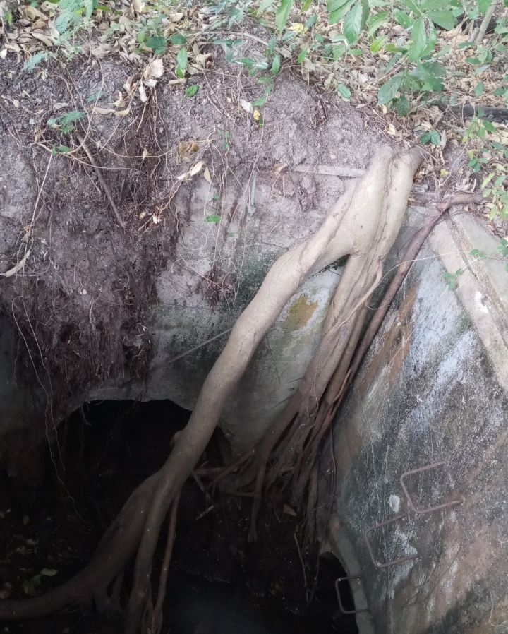 시멘트 도관을 넘고 물을 찾아 뻗은 뿌리