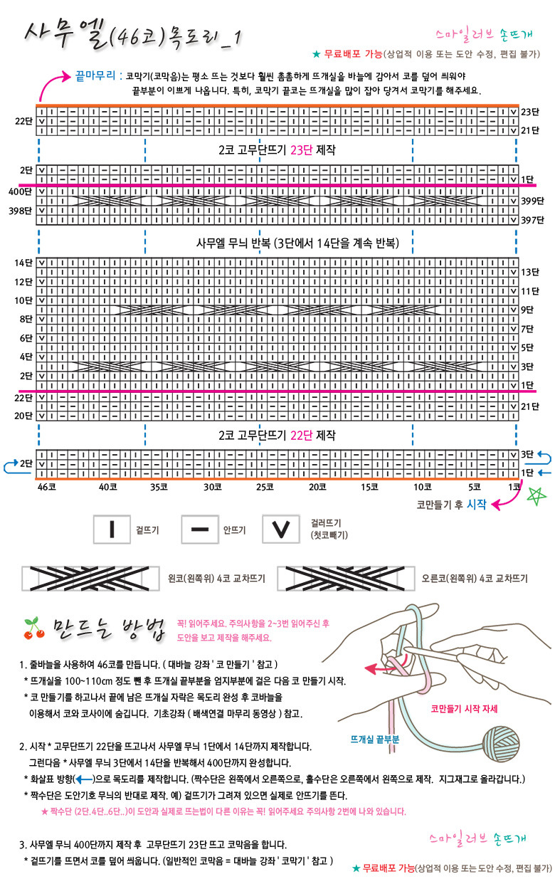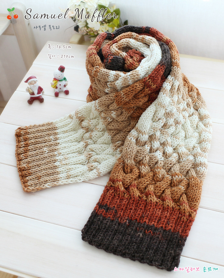 사무엘(매직그라데이션) 손뜨개(뜨개질) 십자꽈배기 무료도안 남자 여자목도리만들기 DIY