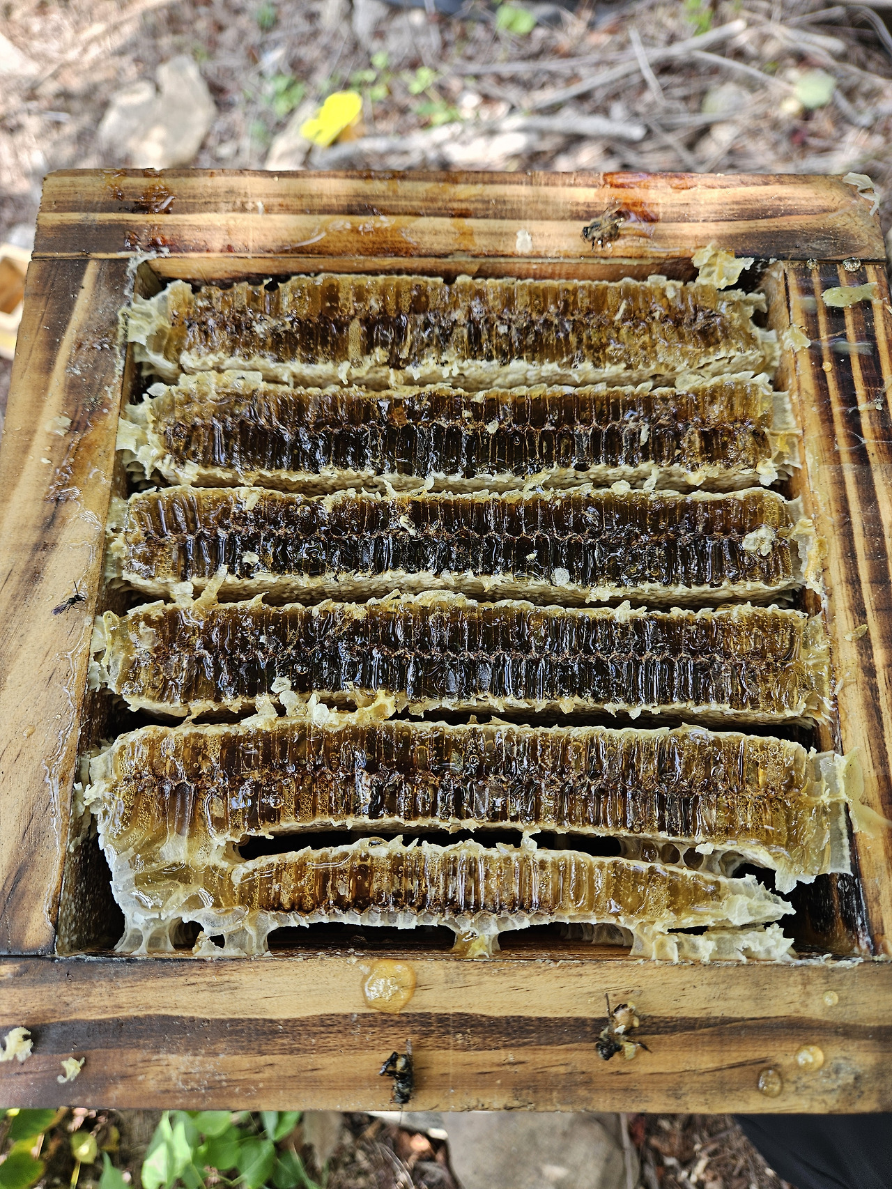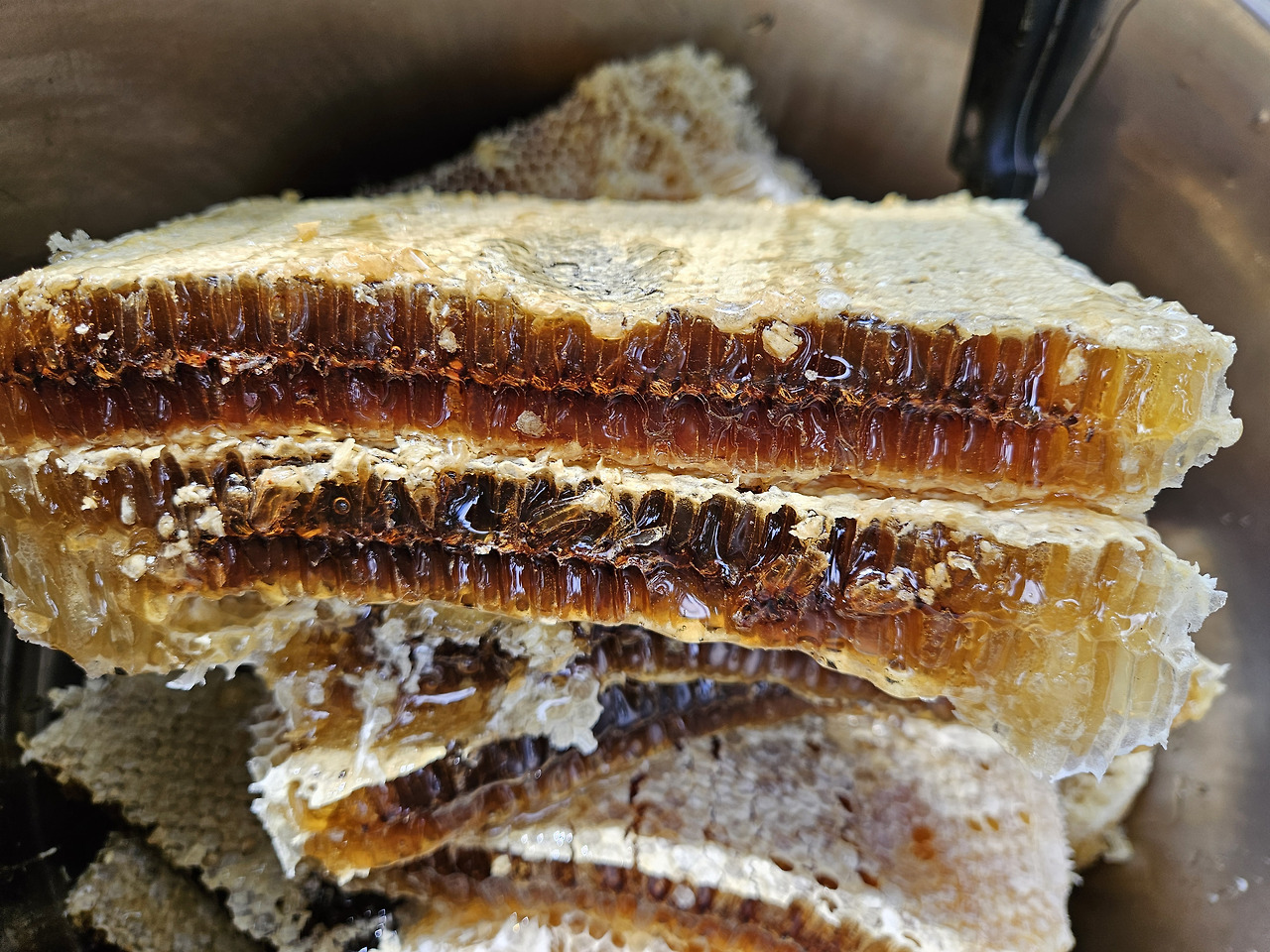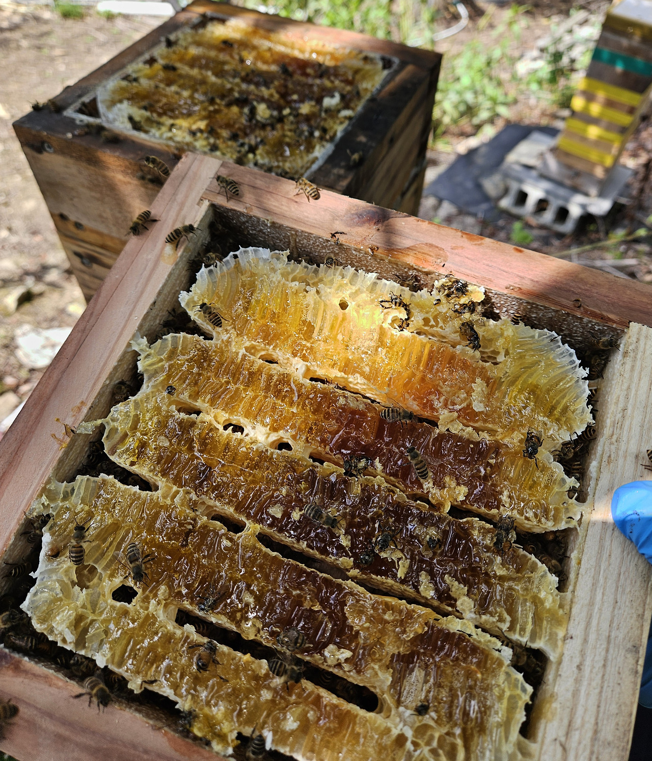 벌통을 열면 이렇게 꿀이 꽉찬 벌집이 있습니다.