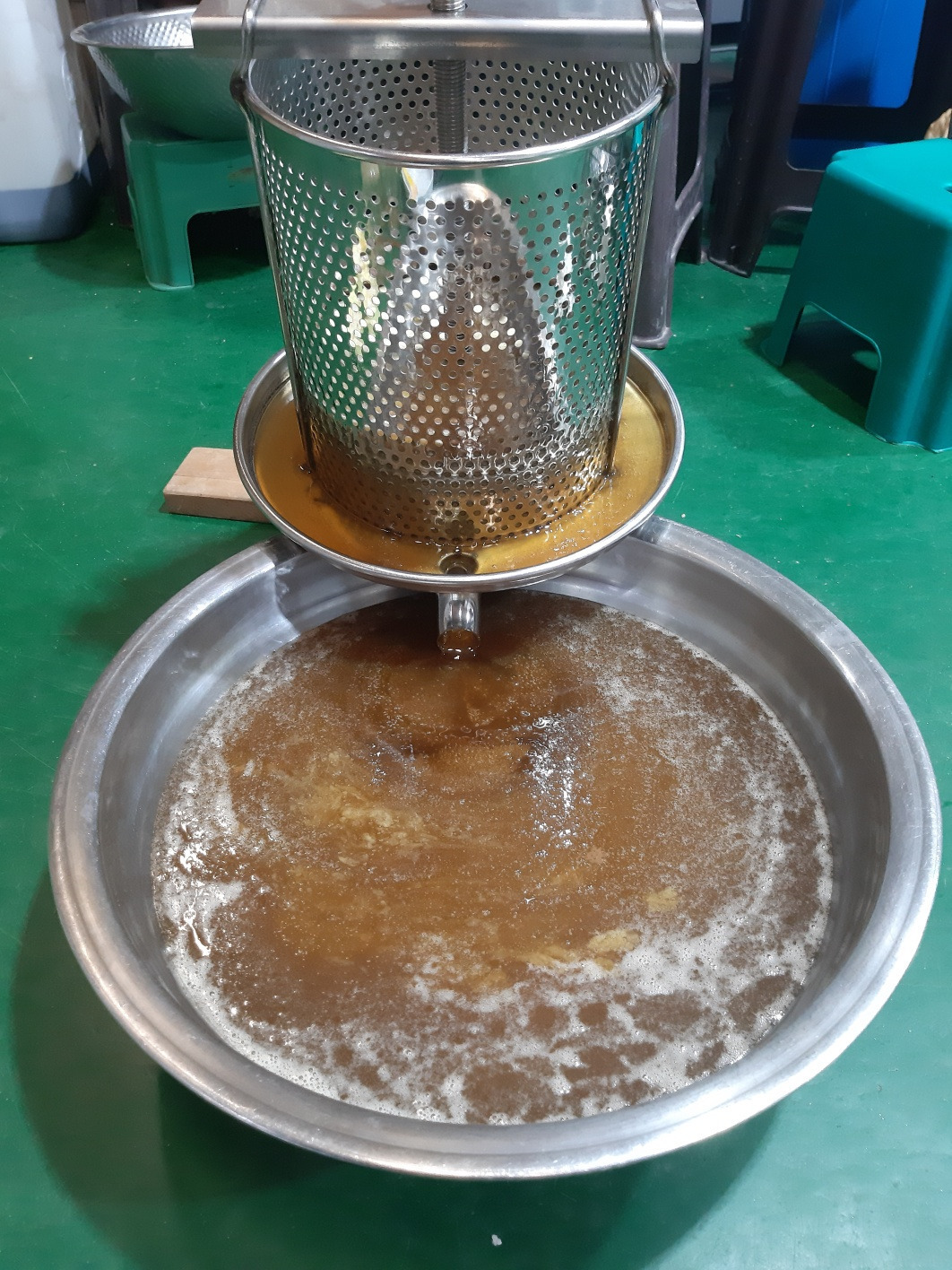 꿀이 가득한 벌집 위에 떠 있는 건 꽃가루입니다. 저희는 벌에게서 꽃가루를 뺏지 않고 그냥 둡니다. 벌들이 둥글게 뭉쳐서 끼고 날라다 태어날 아기 벌들도 먹이면서 저장해 두고 꿀과 함께 그들의 생명의 양식이니까요. 올해 저희 지역에는 비가 많이 안 내려서 꿀 농사는 아주 실하게 되었습니다. 지인들 초대해서 빵에 꿀 찍어 드시라 했더니, 이 귀한 토종꿀을 빵 찍어 먹다니 이 무슨 호사냐며 즐거워 하셨어요. ㅎㅎ 정~말 꿀맛이었습니다. 오늘 2차 꿀 뜨는데 벌써부터 설레네요.^^ |