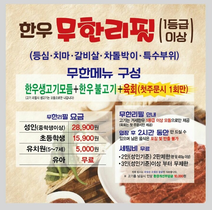 촬영 주 내용이 한우무한리필이며 무한리필 구성에는..