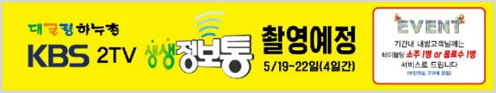 KBS2TV 생생정보통에 저희 매장 촬영 예정에 있습니다..