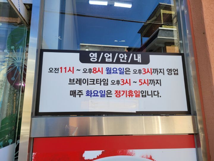 휴무일 : 월요일은 오후3시까지 영업, 매주 화요일 정기휴일