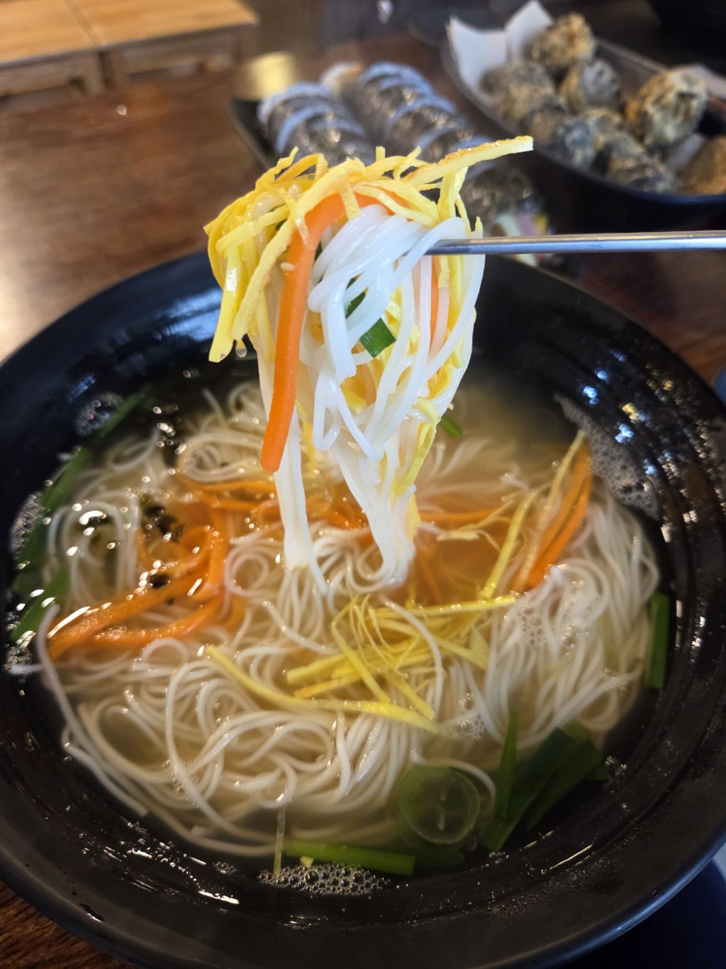 CAFE 언니네국수김밥 강릉 맛집멋집 작성시간25.05.01 앱으로보기 점심시간 갑자기 비가 내렸어요비오는날 뜨끈한 국물이 생각나기에 길건너로 왔어요 ㅎ진한 멸치국물에 속이 다 시원해요요거 땡초김밥이지요 무섭 ㅎㅎ비빔국수도 있지요 ㅎㅎ어묵국물도 셀프로 떠 먹구요 ㅎㅎ철판에 잔뜩있던 떡볶이가 이젠 없는게 쫌 아쉽지만 사실 전 잔치국수를 더 좋아했지요 ㅎ비오니 더 푸릇해보이는 은행잎느긋한 점심시간 너무 좋네요^^ 카페방문 댓글 10 현재 게시글 추가 기능 열기 공유하기 신고 센터로 신고