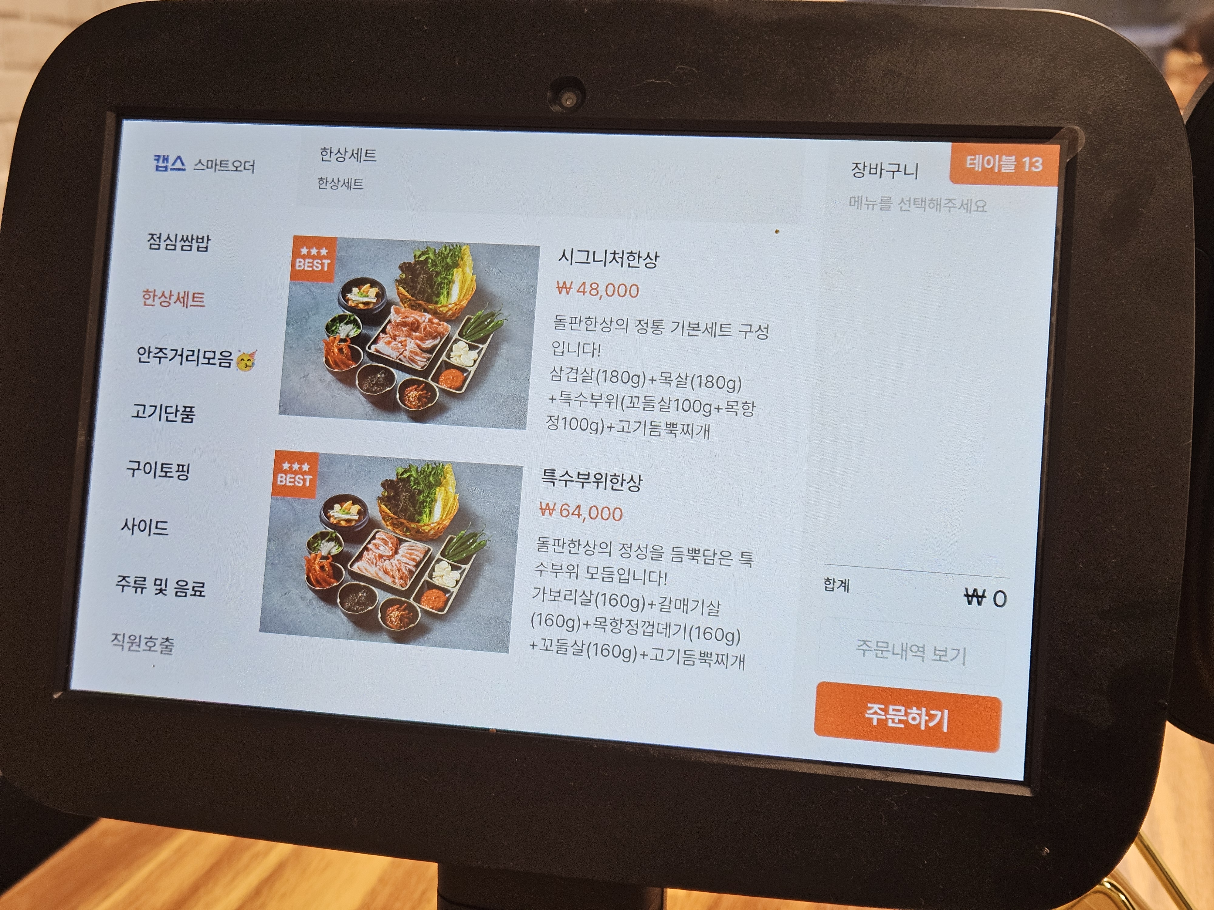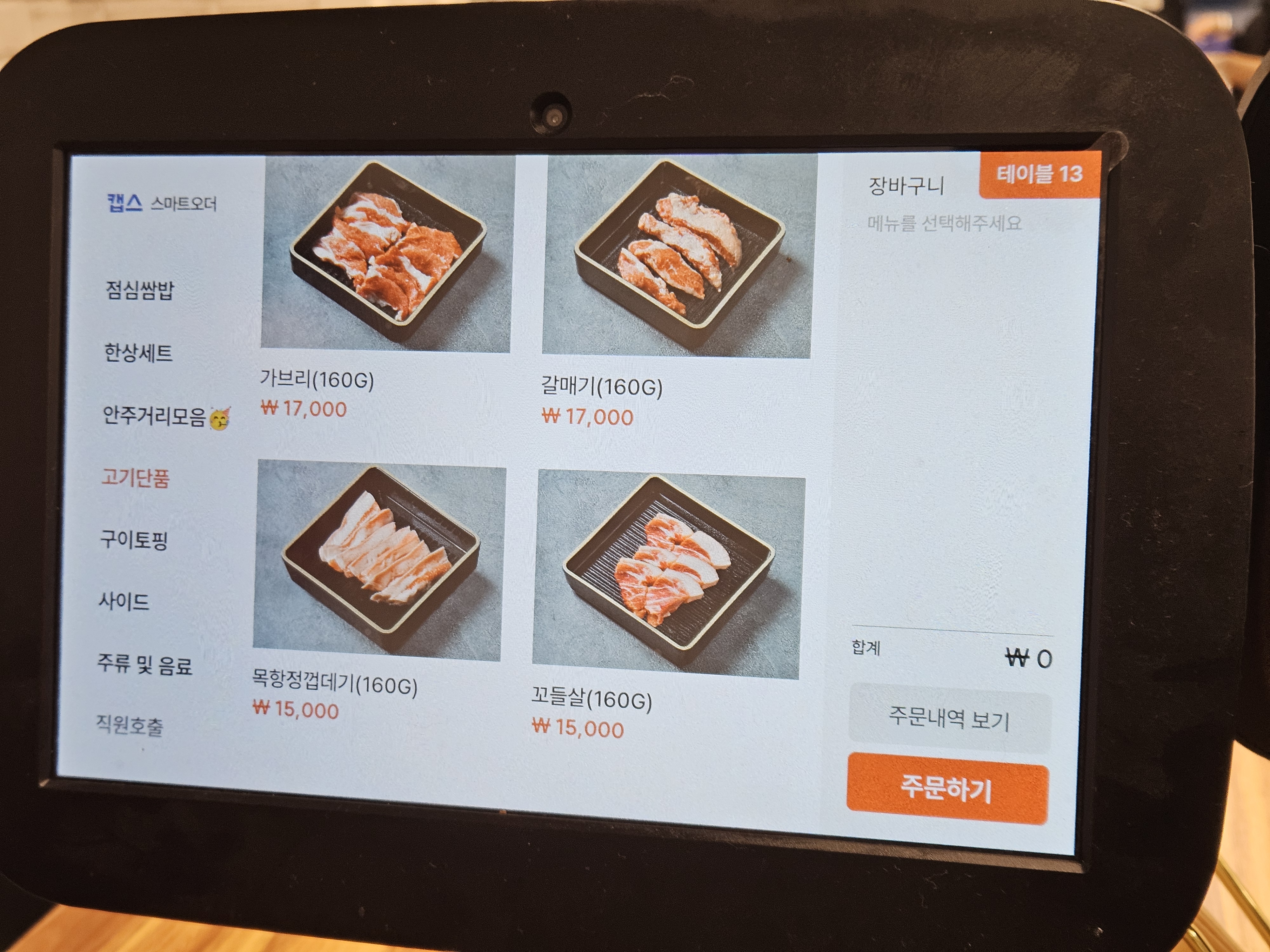 주문은 테이블위의 키오스크로 하면됩니다.