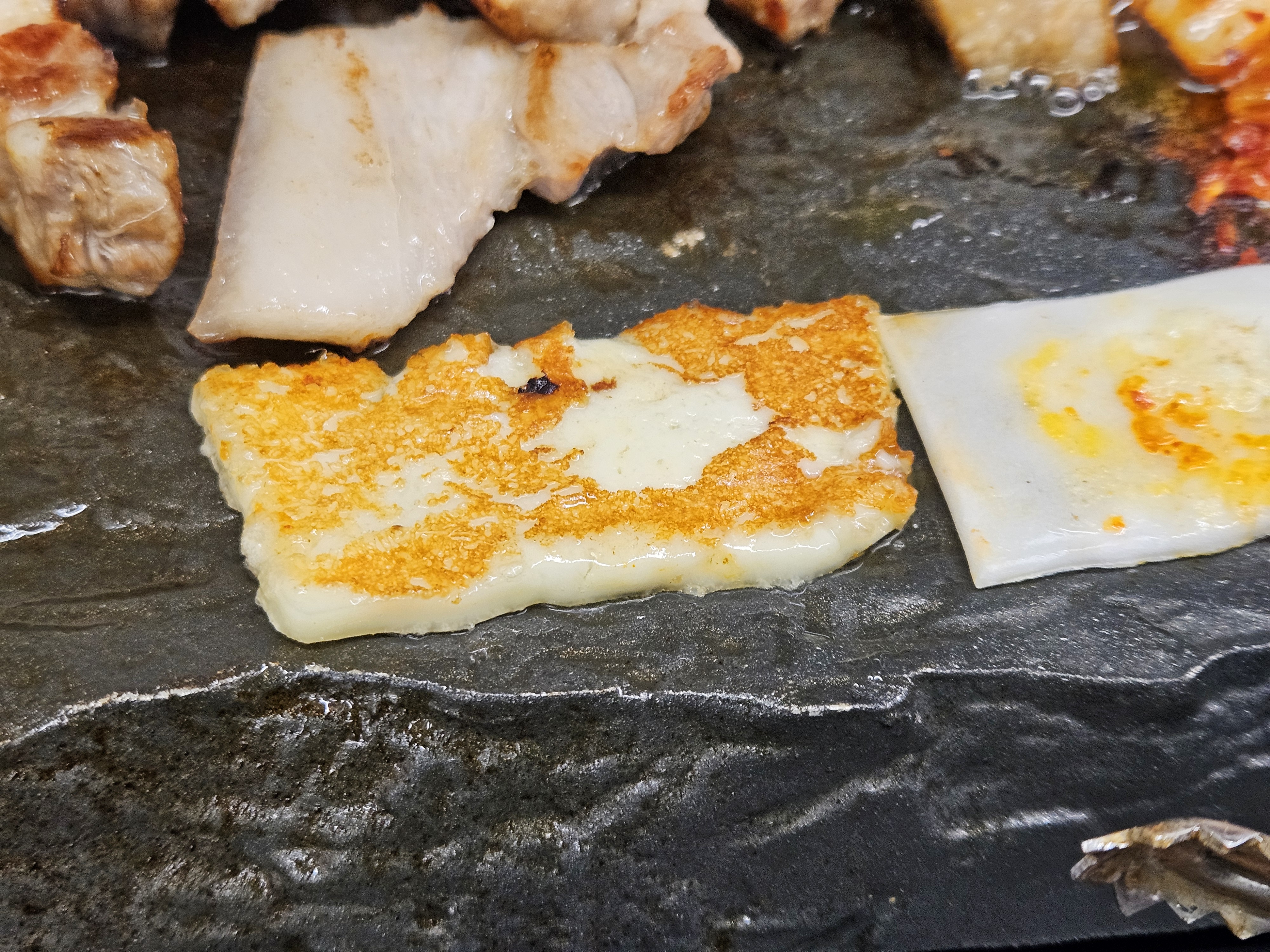 치즈도 구워서 고기에 싸먹는데 고소한 풍미가 남다르네요.