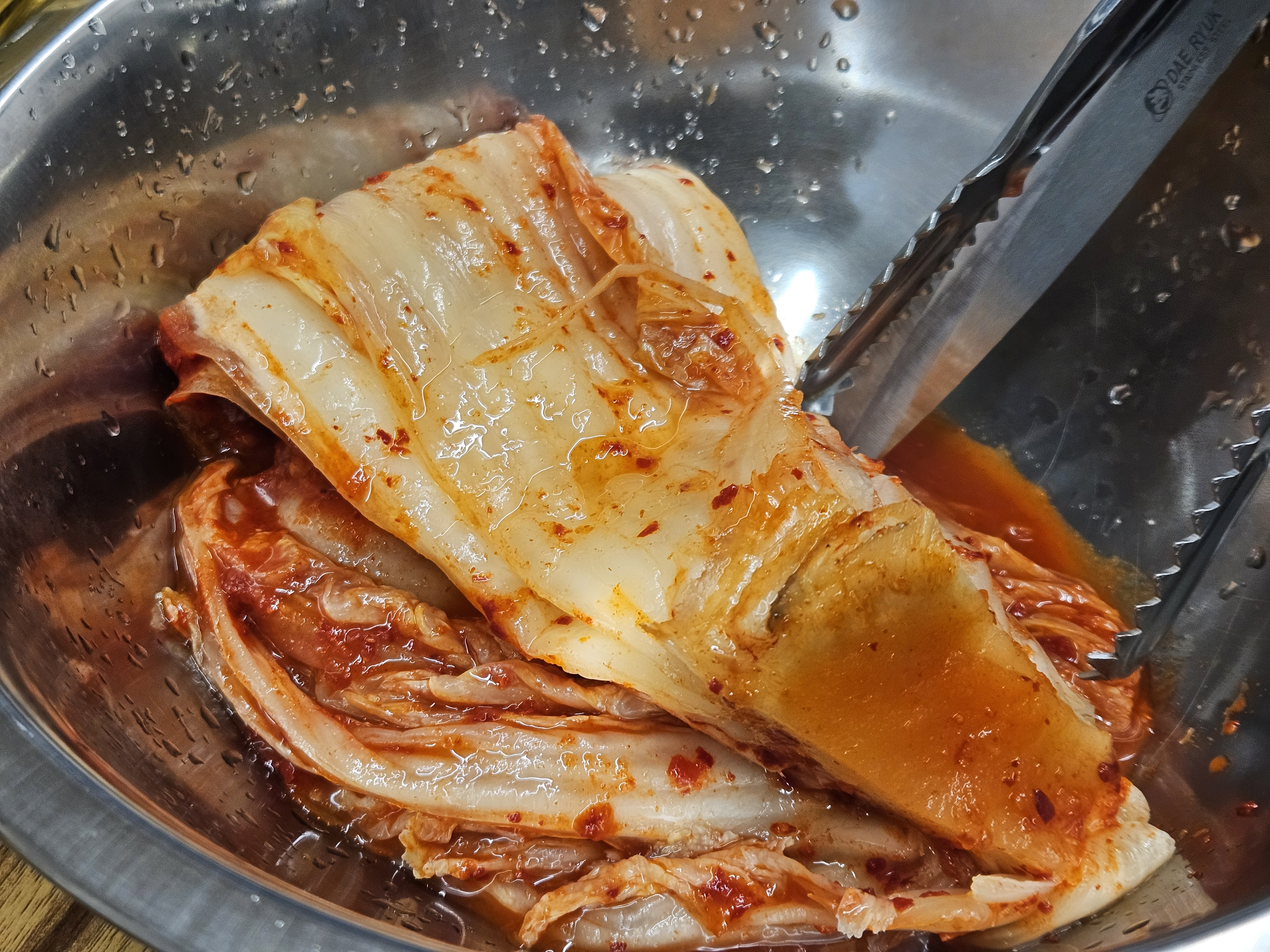 주문하면 상차림이 나오는데 양푼에 담겨나온 포기김치를 보자마자
