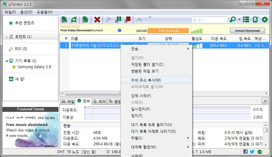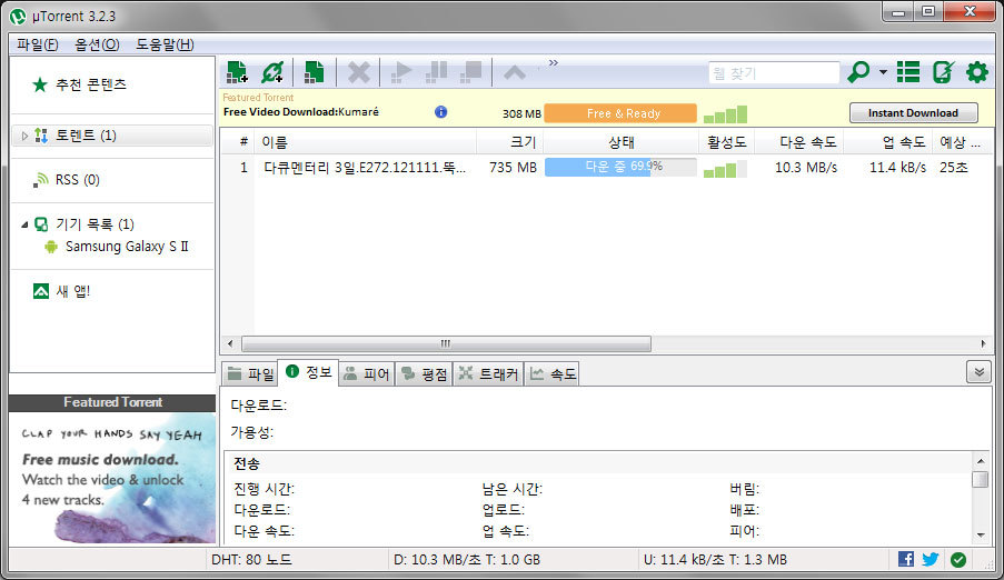 또 유토렌트의 다운로드 화면이 나오죠?