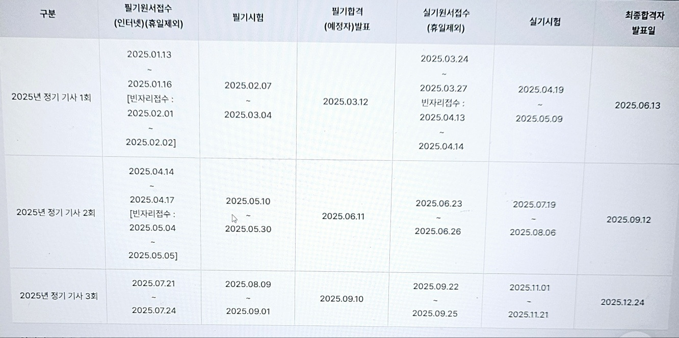 - 시험 일정은 종목별, 지역별로 상이할수 있음