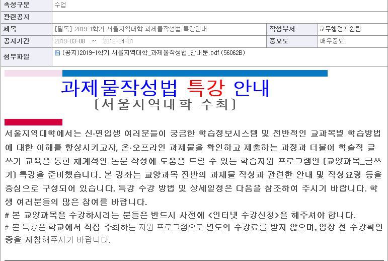 [공지사항][필독] 2019-1학기 서울지역대학 과제물 작성법 특강안내 작성자박소연(4학년)|작성시간19.03.09|조회수19 목록 댓글 0 글자크기 작게가 글자크기 크게가 (공지)2019-1학기 서울지역대학_과제물작성법_안내문.pdf 첨부파일첨부된 파일이 4개 있습니다. jpg 파일 罹≪쿂1-1.jpg 다운로드 jpg 파일 罹≪쿂2.jpg 다운로드 jpg 파일 罹≪쿂1-3.jpg 다운로드 pdf 파일 (공지)2019-1학기 서울지역대학_과제물작성법_안내문.pdf 다운로드 다음검색 현재 게시글 추가 기능 열기 북마크 신고 센터로 신고 댓글 댓글 0 댓글쓰기 답글쓰기 댓글 리스트