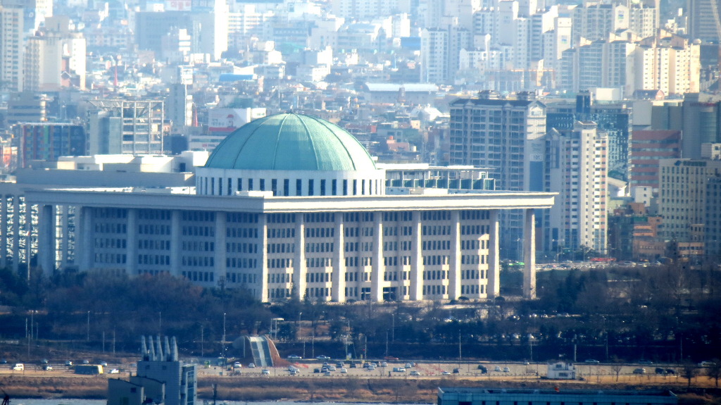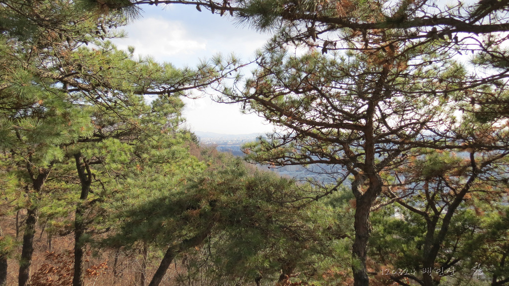 소나무 가지 사이로 보일듯 말듯 한 여의도 국회의사당 (사진으로는 뵈지가 않는구먼..)