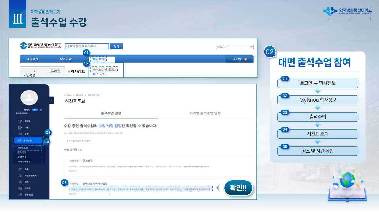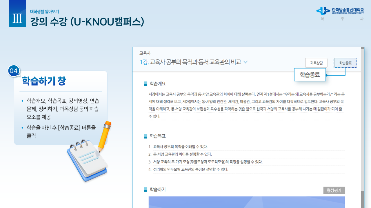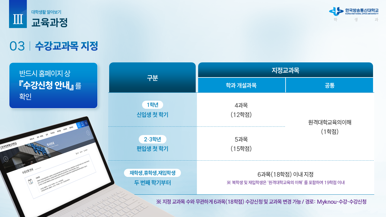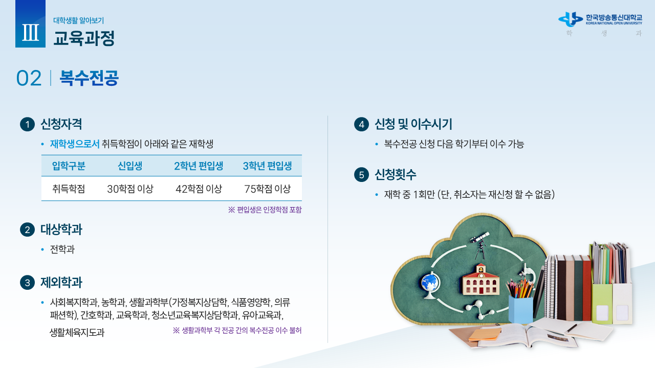 신.편입생을 위한 안내자료1 (학사 흐름도) 작성자박남수(202544,광주)|작성시간26.02.23|조회수13 목록 댓글 0 글자크기 작게가 글자크기 크게가 학교에서 공식적으로 제공하는 신.편입생을 위한 OT 자료입니다.내용이 광범위하고 알차기에 그림파일로 올립니다. 다음검색 현재 게시글 추가 기능 열기 북마크 공유하기 신고 센터로 신고 댓글 댓글 0 댓글쓰기 답글쓰기 댓글 리스트