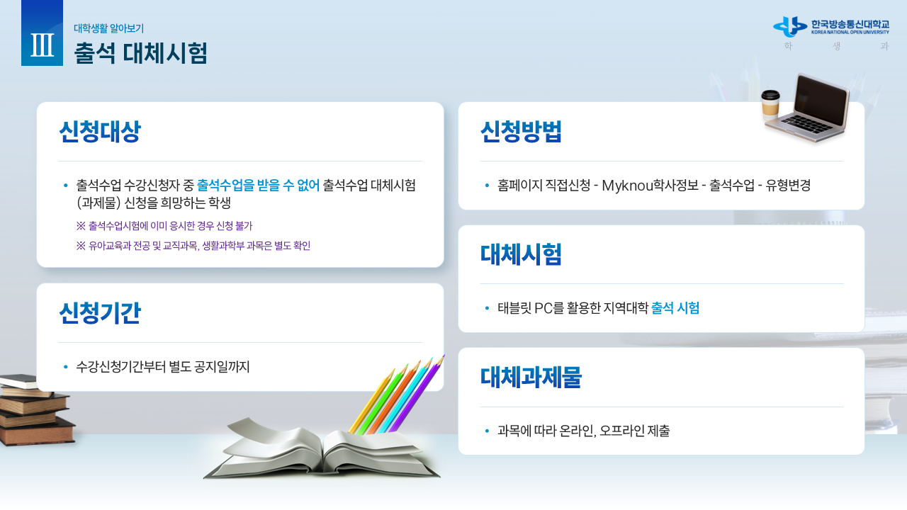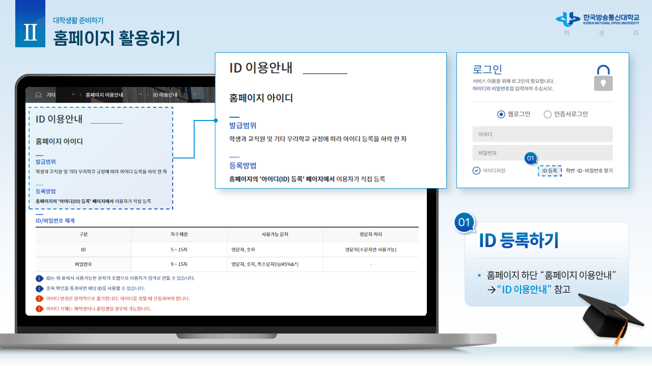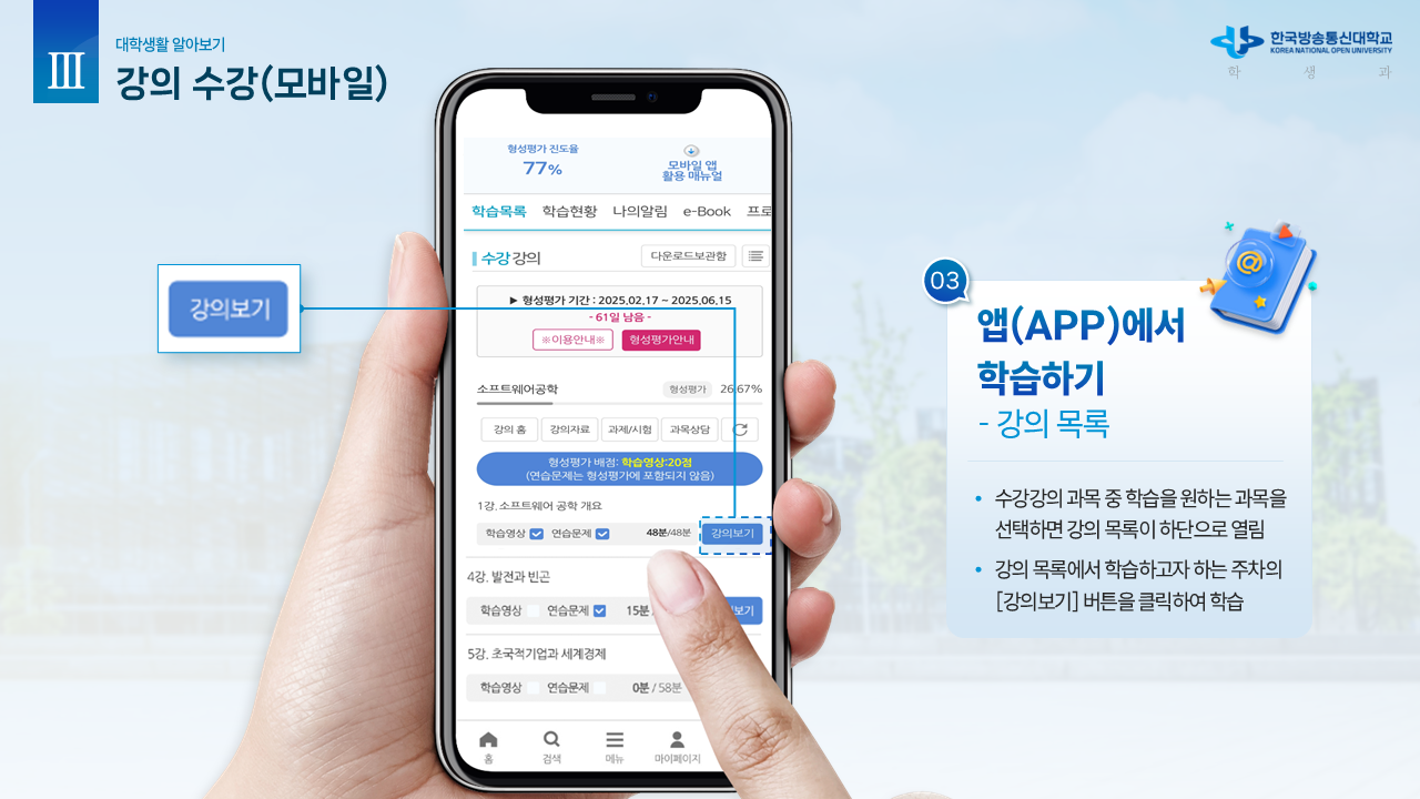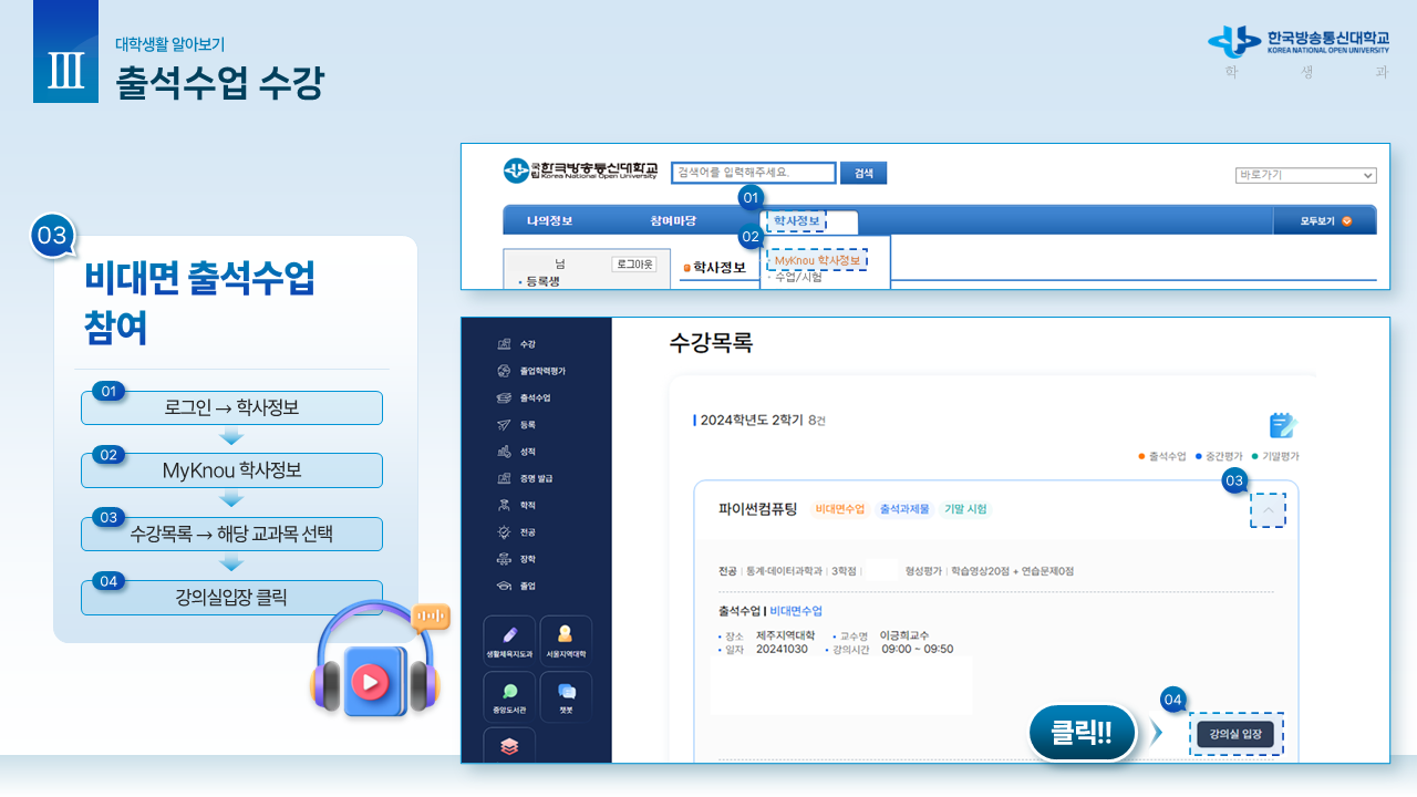 신.편입생을 위한 안내자료1 (학사 흐름도) 작성자박남수(202544,광주)|작성시간26.02.23|조회수13 목록 댓글 0 글자크기 작게가 글자크기 크게가 학교에서 공식적으로 제공하는 신.편입생을 위한 OT 자료입니다.내용이 광범위하고 알차기에 그림파일로 올립니다. 다음검색 현재 게시글 추가 기능 열기 북마크 공유하기 신고 센터로 신고 댓글 댓글 0 댓글쓰기 답글쓰기 댓글 리스트