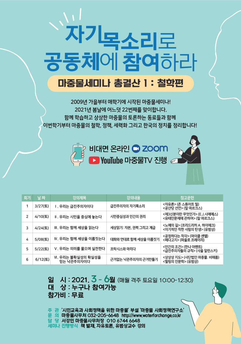2021년도 마중물에서 진행하는 [자기 목소리로 공동체에 참여하라] 세미나 관련 안내드립니다.