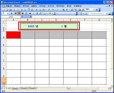 <1> 아래의 그림처럼 B2:E2 범위에 [년월]을 입력할 수 있도록 만듭니다.