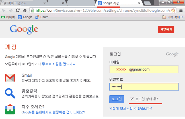 ※ 주의: 위 그림처럼 [로그인 상태 유지] 에 체크선택하는 것은 상황을 봐 가면서 선택에 주의 해야 합니다