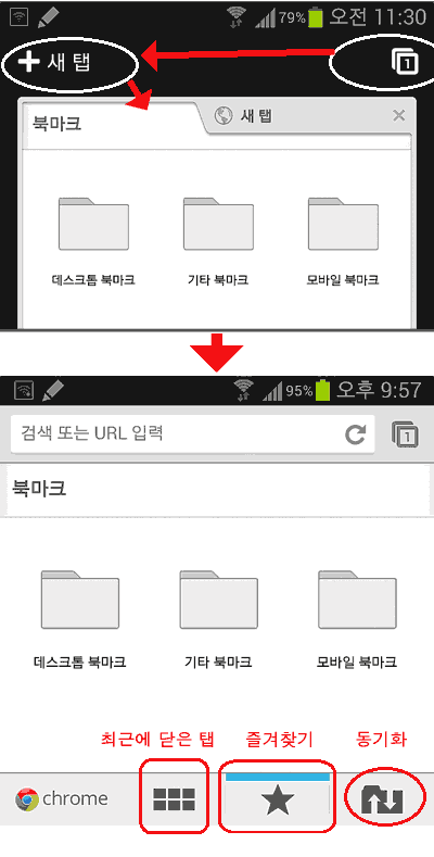 안드로이드 폰에서도 [기본 브라우저] 보다 [크롬 브라우저]가 편리한 게 '탭활성' 메뉴 입니다. 상단에 언제나 보이도록 고정화면 으로 위치하기 때문입니다. [기본 브라우저]에서 '탭활성' 하려면 화면을 푸쉬다운해야 그제사 나타납니다. 푸쉬하다가 자칫 인터넷 링크를 터치하게 되면 푸쉬가 아니라 새탭이 생겨나므로 성가십니다.