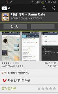 스마트폰용 다음(Daum) 카페 앱이 2013년 4월에 2차 버전으로 업그레이드 되었습니다