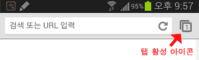 스마트폰 홈(=바탕화면)에 크롬 아이콘을 터치해서 열린 모바일 크롬에서 탭 활성 아이콘을 터치 합니다