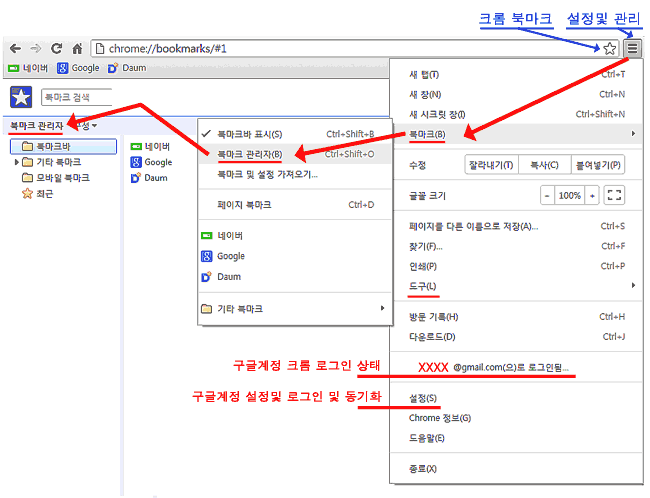PC에서 구글을 초기화 시켜도 됩니다. 스마트 폰 모바일 구글 크롬에는 북마크가 살아 있거든요. 구글을 초기화 시킨 PC에서 PC 크롬을 다시 열어서 로그인 하면 스마트폰에 살아있는 모바일 크롬 과 즉시 동기화 되면서 복구 됩니다. 그 반대의 경우도 마찬가지, 스마트폰 에서 모바일 크롬을 삭제해서 초기화 시켰어도, 모바일 크롬 다시 설치해서 로그인 하면 그 즉시 PC크롬에 살아있는 북마크와 동기화 되면서 복구 됩니다. - 이것이 '구글 계정' 입니다.