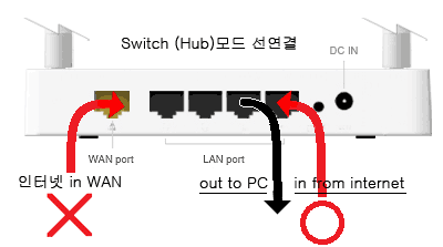 ★ 모드변경된 [스위치(허브)]에서는 'WAN포트' 사용안함.