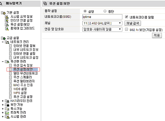 2. 무선 채널과 보안 방식 일치: