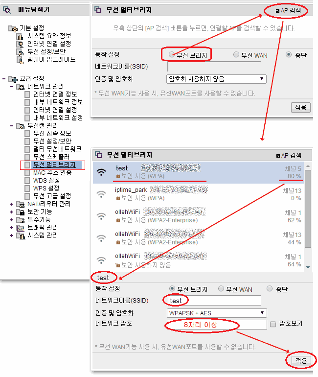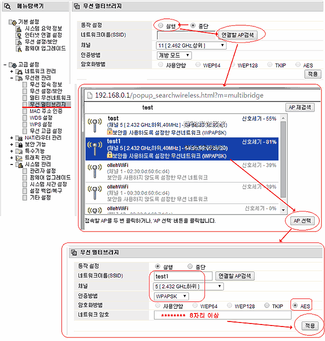 ■ 공유기를 무선 리피터 (멀티 브리지) 모드로 변경 세팅