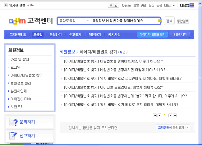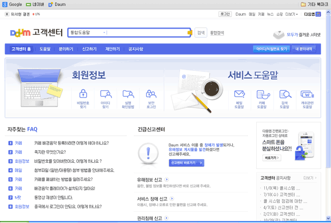 - 다음고객센터 홈 >