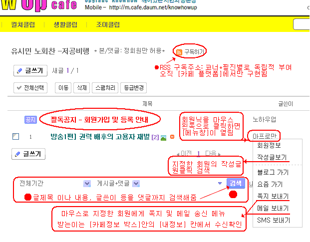'회원제 글쓰기'는 노하우업 카페' 개설 '핵심취지' 입니다.
