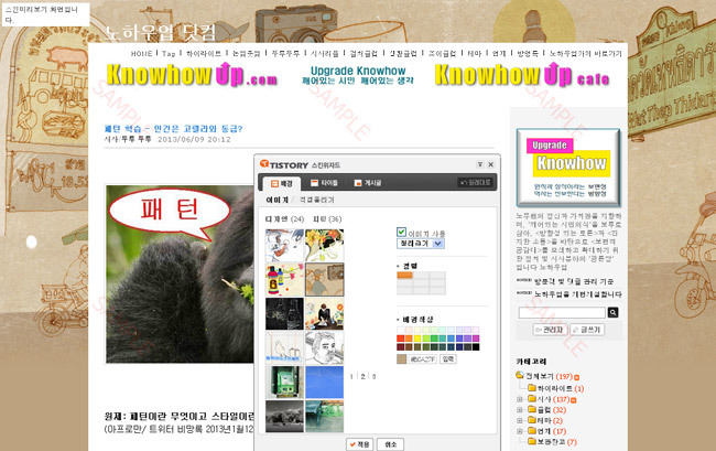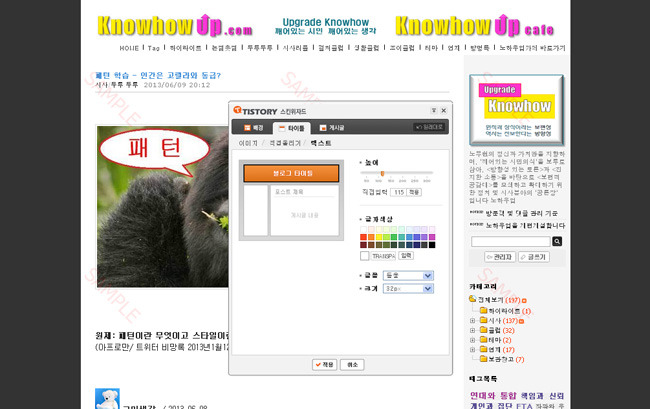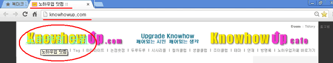 ※ 스킨 원본의 [타이틀 텍스트] 'nimostory' 를 '노하우업 닷컴' 으로 [텍스트] 표기 수정 하려면,
