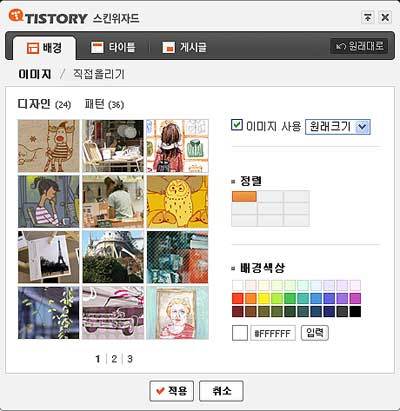 ※ 스킨 기존 배경이미지 맘에 안들면 제작해서 직접올리는 메뉴