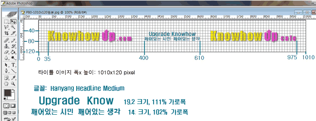- 로고 타이틀 이미지 폭 1010 픽셀 파일로 제작해서 타이틀에 직접올리기 하면,