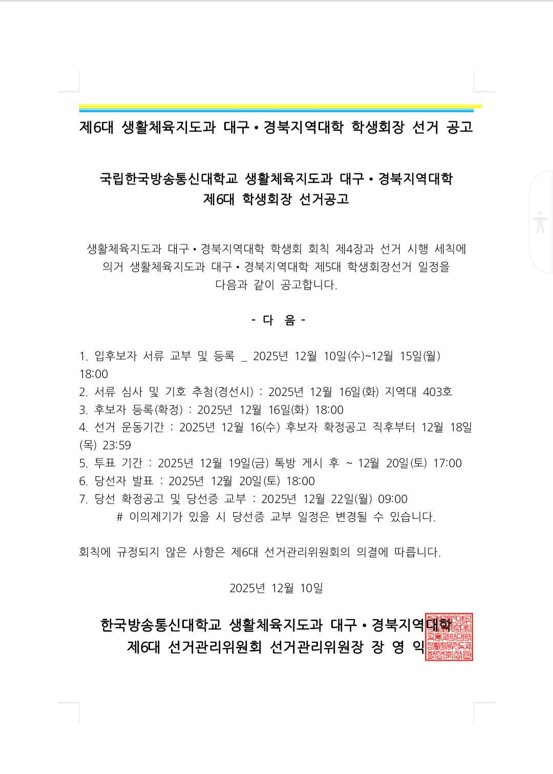 6대 생활체육지도과 학생회장 선거 공고