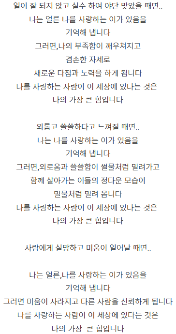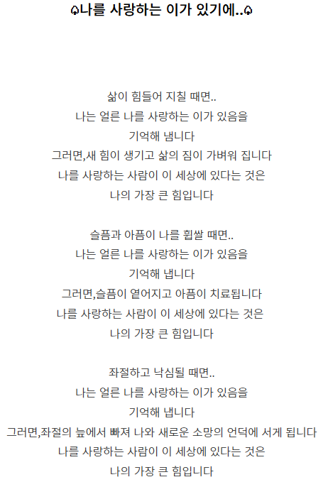 [스크랩] 나를 사랑하는 이가 있기에.. 작성자도진|작성시간25.07.08|조회수17 목록 댓글 0 글자크기 작게가 글자크기 크게가 2025.07.08.s 다음검색 스크랩 원문 : 비공개카페 현재 게시글 추가 기능 열기 북마크 공유하기 신고 센터로 신고 댓글 댓글 0 댓글쓰기 답글쓰기 댓글 리스트