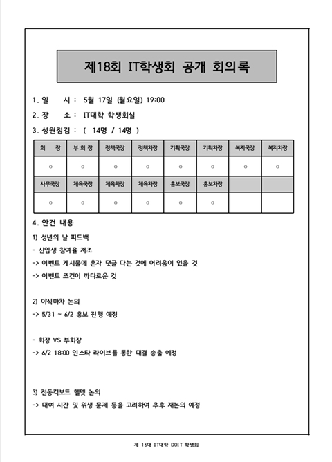 2021 제 18회 IT학생회 회의록 작성자아이티대|작성시간21.05.25|조회수77 목록 댓글 0 글자크기 작게가 글자크기 크게가 2021년 5월 17일 (월) 진행된 제18회 IT학생회 회의록입니다. 다음검색 현재 게시글 추가 기능 열기 북마크 공유하기 신고 센터로 신고 댓글 댓글 0 댓글쓰기 답글쓰기 댓글 리스트