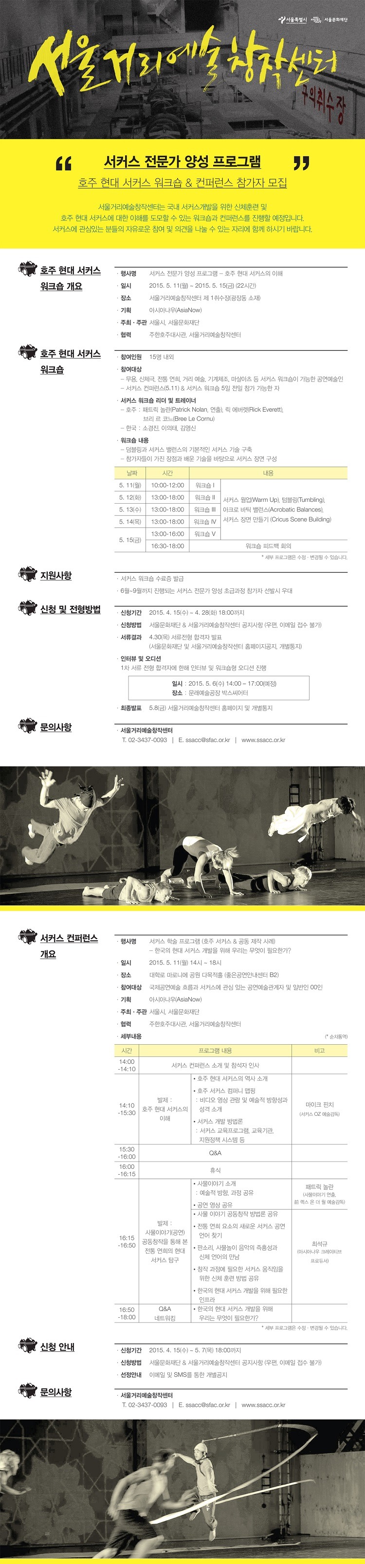 [서울거리예술창센터] 서커스전문가양성프로그램 참가자모집 작성자서울거리창작센터|작성시간15.04.27|조회수20 목록 댓글 0 글자크기 작게가 글자크기 크게가 다음검색 현재 게시글 추가 기능 열기 북마크 공유하기 신고 센터로 신고 댓글 댓글 0 댓글쓰기 답글쓰기 댓글 리스트