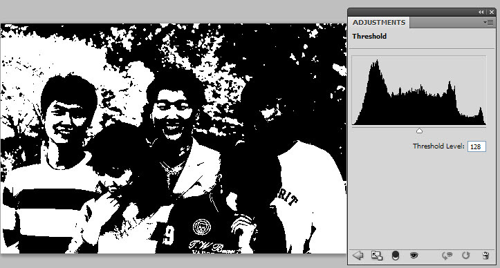 2) 아래와 같이 대하상자가 나타납니다. 기본 단계인 128을 기준으로 밝은 픽셀은 흰색으로 어두운 픽셀은 검정색으로 단순화 되었습니다.
