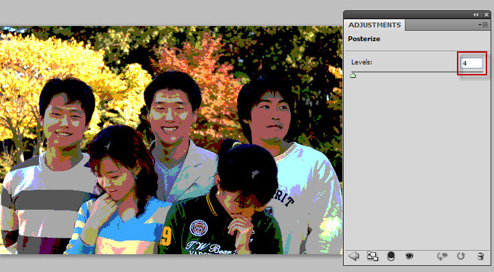 Posterize는 이미지를 구성하는 픽셀 정보의 색상 단계를 2~255단계로 단순화 할 수 있습니다.