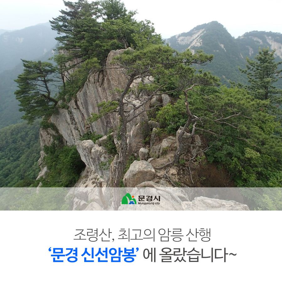 조령산은 경북 문경시와 충북 괴산군을 나누는 백두대간 마루능선을 이루는 산으로 전체적으로는 산림이 울창하며 대암벽지대가 많고 기암·괴봉이 노송과 어울려 마치 그림 같다.