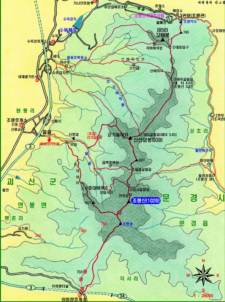 * 조령산의 추천 산행 코스 *