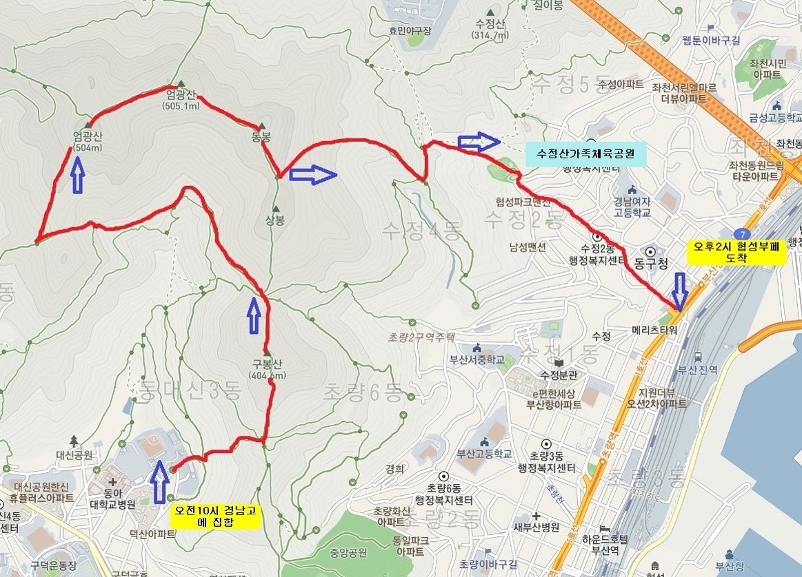(경남고등학교~구봉산~엄광산~동봉~수정산가족체육공원~협성뷔페)