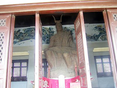 섬서성 바오지(보계) 시내 중앙통에 자리잡은 신농씨 사당과 그 안에 안치된 신농 소상의 위용