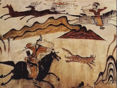 한 사람, 사냥의 말미를 장식하는 기마사냥꾼과 사슴 한 쌍 뿐이다. 고구려 고분벽화의 한 시기를 풍미했던