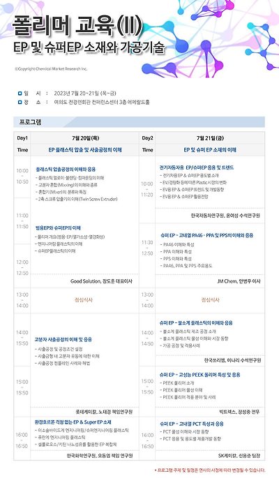 폴리머교육 (Ⅱ) – EP 및 슈퍼EP 소재와 가공기술(2023) 오픈 [7/20-21, 전경련회관]